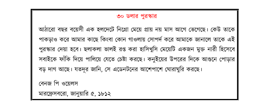 “হুম, ভালই হচ্ছে।” বেসির পিঠ চাপড়ে মিস লুসি বললেন। “শোন, আগামি সোমবার তুমি কাজে বেরুবার আগে তোমার সাথে আমার কিছু কথা আছে, বুঝেছ?”