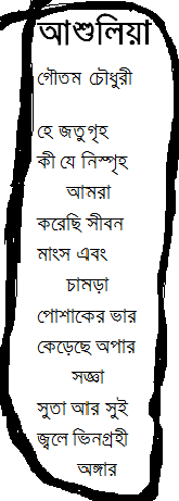 ‘অই ভুরুঙ্গি-মরার শুঁকি থাম থাম। কি করতেছিস অ্যাঁ? বাড়িতে পোলাপাইন আছে না? বেবাকে তো নষ্ট হইয়া যাইতেছে!’